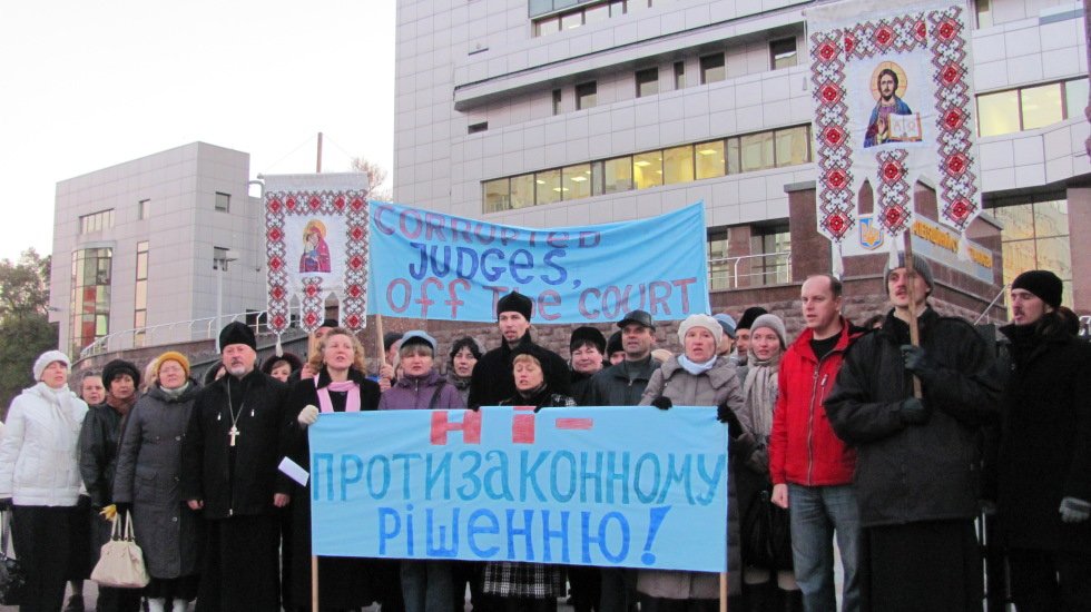 Тому сьогодні, 28 жовтня 2010 року, громада УАПЦ-Канонічної прийшла з акцією протесту до Апеляційного суду м. Києва, щоб попередити корумпованих суддів про відповідальність перед законом, яку їм доведеться нести в разі прийняття антиконституційного, антилюдяного рішення.