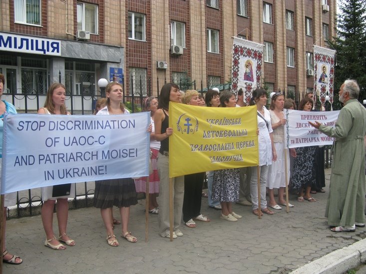 У середу, 29 липня, духовенство й вірні Української Автокефальної Православної Церкви-Канонічної провели акцію протесту біля Голосіївського РУ ГУ МВС м. Києва та подали начальнику цієї установи заяву з вимогою припинити навмисне затягування розслідування замовної кримінальної справи проти Церкви та її Першоієрарха Патріарха Мойсея і спрямувати свою діяльність відповідно до чинного законодавства України.