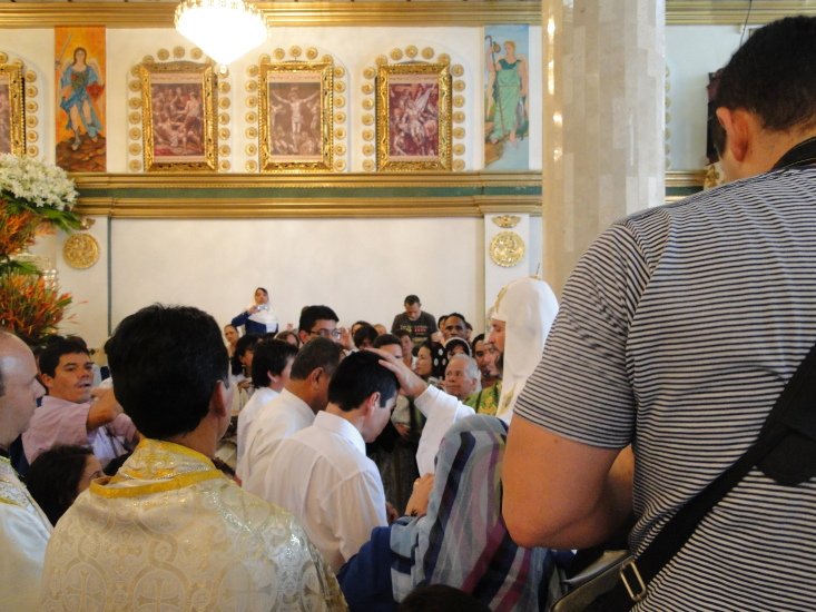 По завершенні відбулася трапеза з винограду, п’яти хлібів і 12 рибин, які приготувала ігуменя мати Ліз і якими наситилися близько 200 вірних. Щасливі і задоволені, вони співали веселі колумбійські пісні, вели з Патріархом колумбійський танок і вперше фотографувалися з Ангелами у великому числі.