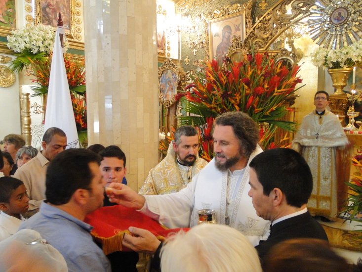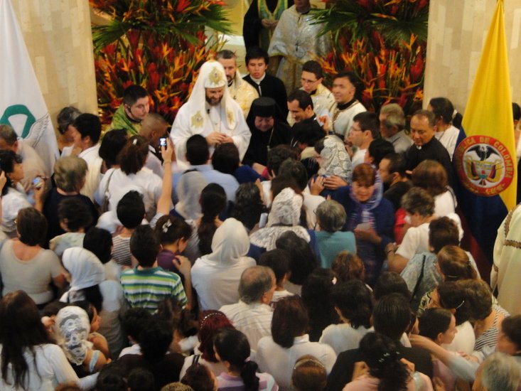 По завершенні відбулася трапеза з винограду, п’яти хлібів і 12 рибин, які приготувала ігуменя мати Ліз і якими наситилися близько 200 вірних. Щасливі і задоволені, вони співали веселі колумбійські пісні, вели з Патріархом колумбійський танок і вперше фотографувалися з Ангелами у великому числі.