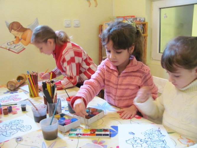 А для підтримки дитячого бажання до спілкування, для самовираження і розвитку творчих здібностей дітей, молоді талановиті вчителі, які мають глибокий християнський світогляд і живуть за устоями православної церкви, проводять у школі заняття, спрямовані на пробудження творчого розвитку дитини. Незважаючи на різний вік, діти з захопленням навчаються малювати фарбами та кольоровими олівцями, ліпити з глини та пластиліну, плести бісером, виготовляти святкові листівки і чудові вироби з різнокольорового паперу та різноманітних матеріалів. Також під час занять дітки в ігровій формі навчаються розмовляти англійською та французькою мовами.
