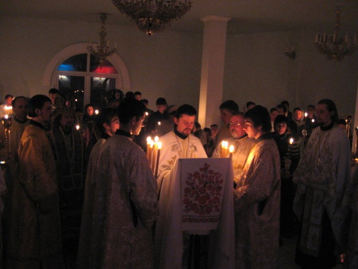 В скорботний вечір Страсного четверга в храмі УАПЦ-Канонічної у Києві, як і в усіх православних храмах, духовенство читало 12 страсних Євангелій, в яких розкрита трагедія людства і велика любов Бога, який і Сина Свого віддав за тих, хто увірує в Нього. Вірні слухали Святе Євангеліє з запаленими свічками і по закінченні служби понесли вогонь до домівок, щоб через цей невеличкий вогник принести величну силу Божого захисту для своїх родин і своїх домівок.