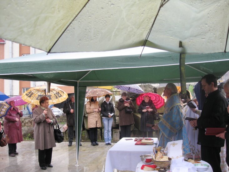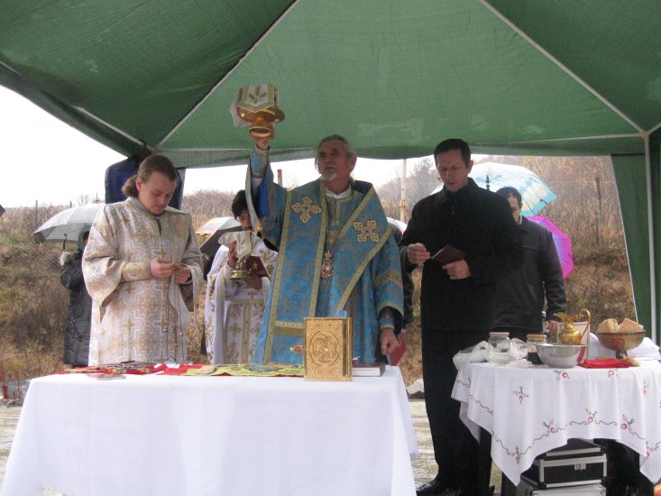 Свята служба відбувалась під відкритим небом на фундаменті майбутнього Храму. Навколо була осіння холоднеча та мряка, а в душах вірян панувало тепло і спокій Божої благодаті.