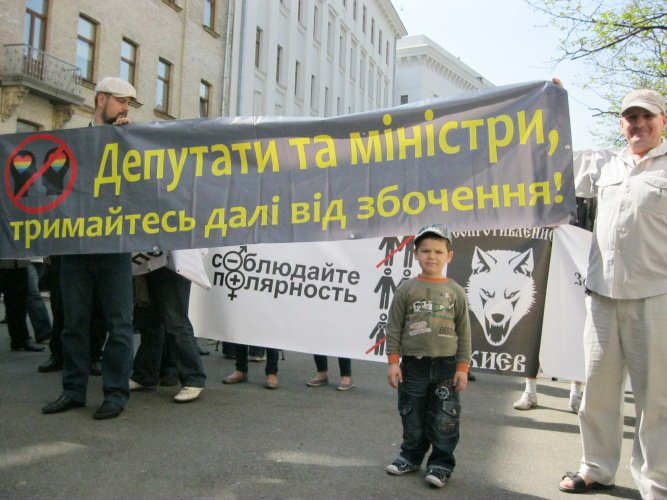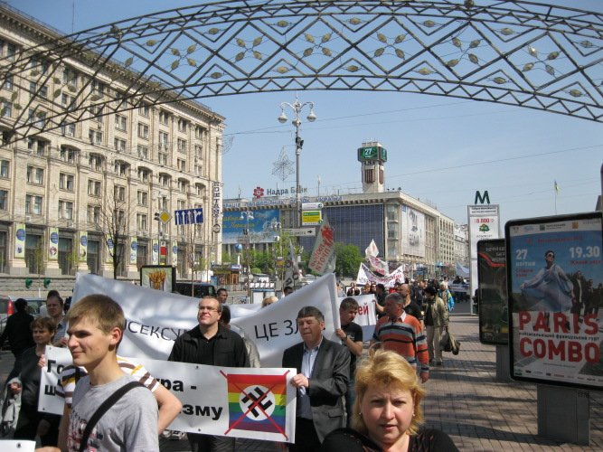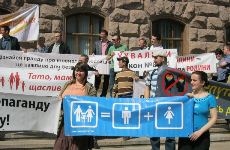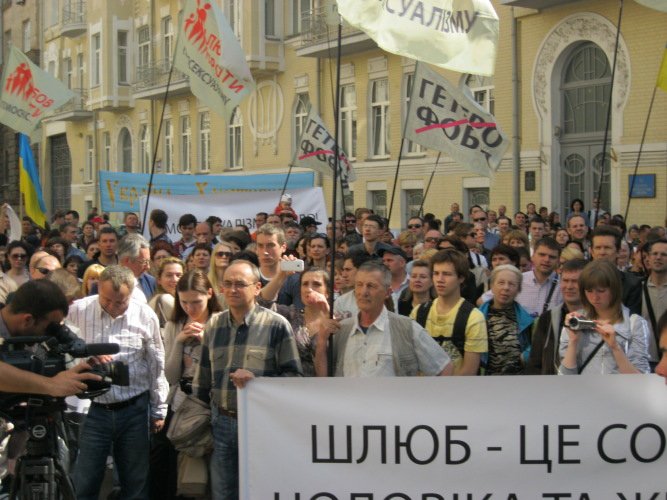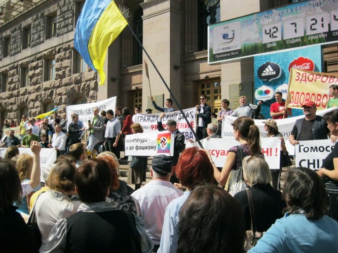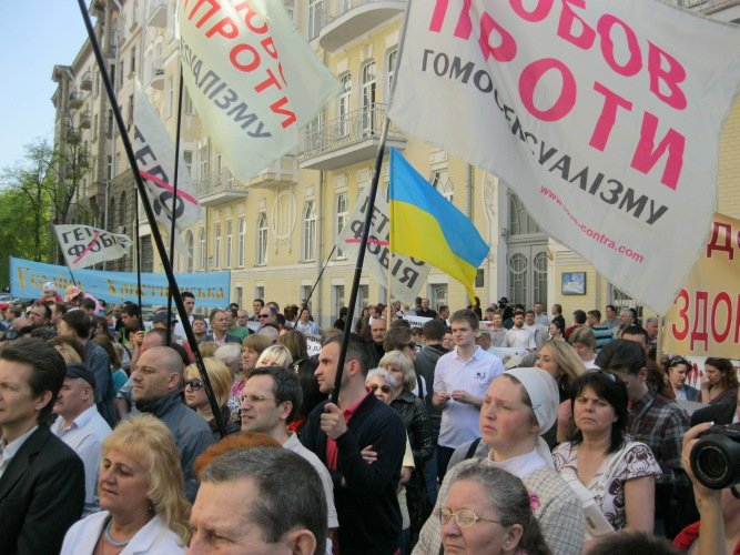 27 квітня 2012 року коаліція громадських і релігійних організацій м. Києва, захищаючи споконвіків сповідувані українцями християнські цінності, провела акцію протесту біля будівель Адміністрації Президента України та Київської Міської Державної Адміністрації проти запланованого на 20 травня гей-параду на центральних вулицях столиці України міста Києва.