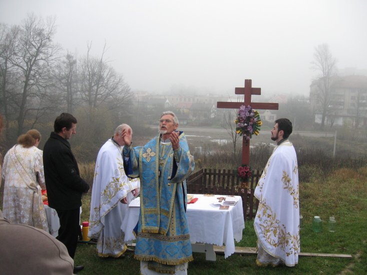 Але їм не під силу зупинити святу молитву, яка піднімається до Небес від щирості серця Божих дітей.Свята Літургія відбулася на відкритому місті біля пам’ятного хреста на честь майбутнього Храму.В цей день відчувалась велика присутність Божих ангелів, а під час євхаристії сірі хмари розступилися і прямо над головою присутні побачили блакитне небо, немов сам Господь причащав їх Своїх дарів.