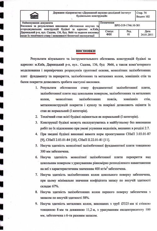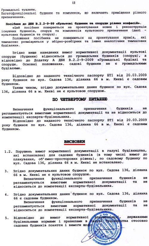На останньому шостому засіданні, 19 травня 2011 року, колегія Апеляційного суду на чолі з суддею Шаховою О.В., вже в шосте порушила процесуальний закон і не прийняли від моїх адвокатів та не долучила до матеріалів справи найважливіші документальні – висновки, зроблені фахівцями в галузі будівництва та експертами з ученими ступенями доктора та кандидата технічних наук, з ДП “Державний науково-дослідний інститут будівельних конструкцій” та “Незалежного Інституту Судових Експертиз”. За результатами обстеження споруд, спеціалістами було підтверджено їхню повну придатність до безпечної експлуатації і вони надали їм вищу оцінку (першої категорії). Натомість суддя Шахова О.В. ці важливі висновки не долучила до матеріалів справи.Де законність та об’єктивність суду? Їх немає.
