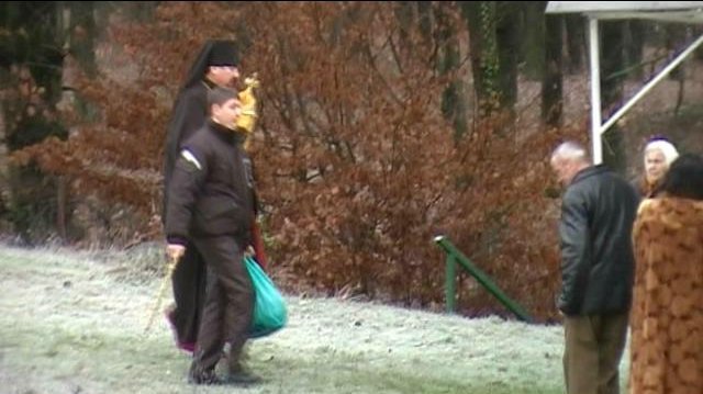 На світлині ви бачите, як Філаретовий єпископ Кирило входить в нашу церкву, а єпископ Василій і півсотні вірних нашої церкви моляться на морозі, бо церкву захопили Філаретові розбійники, ще й присвоїли собі церковні облачення і особисті речі єпископа Василія і духовенства.